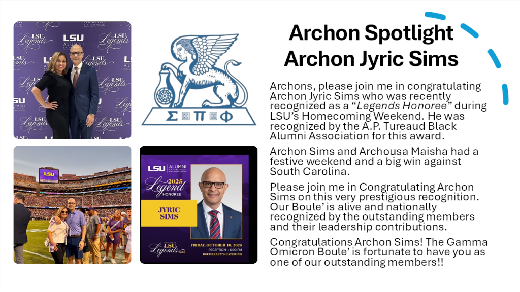 Archon Jyric Sims was recently recognized as a “Legends Honoree” during LSU’s Homecoming Weekend.